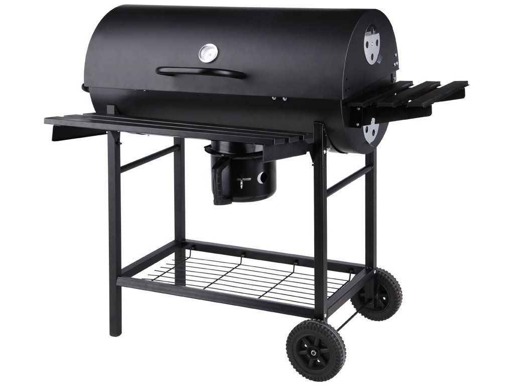 Veľký záhradný gril BARREL na drevené uhlie, s vekom so vstavaným teplomerom je perfektným riešením pre milovníkov grilovania, ktorí dokážu oceniť chuť správne ogrilovaného mäsa a zeleniny na drevenom uhlí.