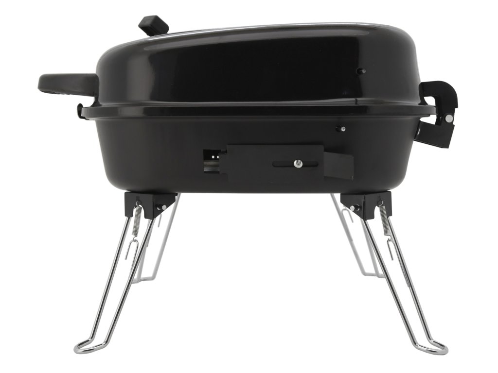 Konštrukcia grilu je vyrobená z kvalitného smaltovaného oceľového plechu čiernej farby. Stabilitu zaisťujú štyri kovové rozkladacie nohy.