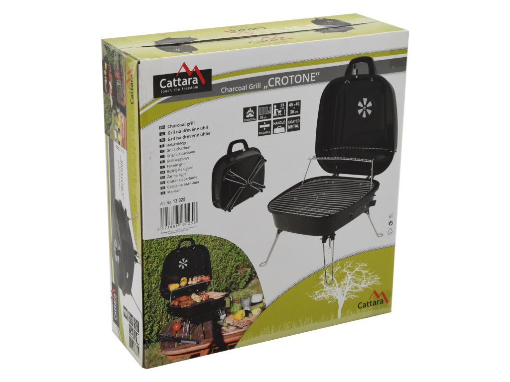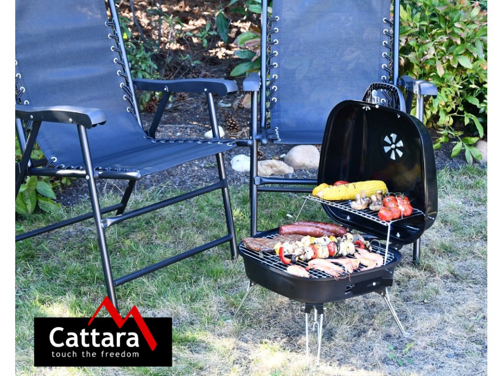 Kompaktný, prenosný gril CATTARA CROTONE, ktorý sa hodí na kempovanie, na cesty a pre ďalšie outdoorové využitie.