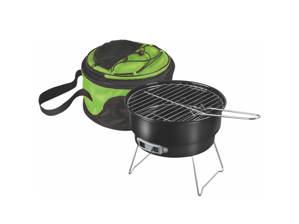 Jeho rozmery sú 26 × 12,5 cm a je vybavený pochrómovaným roštom s priemerom 25 cm. Dodávaný je v multifunkčnej termotaške, ktorá má vnútorný povrch z teflónu, pre uloženie horúceho grilu a súčasne môžete do vnútorného priestoru grilu umiestniť napr. sadu kempingových hrncov. Zároveň vám vychladené drinky v integrovanej termotaške vydržia až 5 hodín studené ako z chladničky. Termotaška sa tak stáva nenahraditeľným pomocníkom pre uchovanie chladených nápojov.