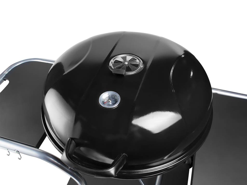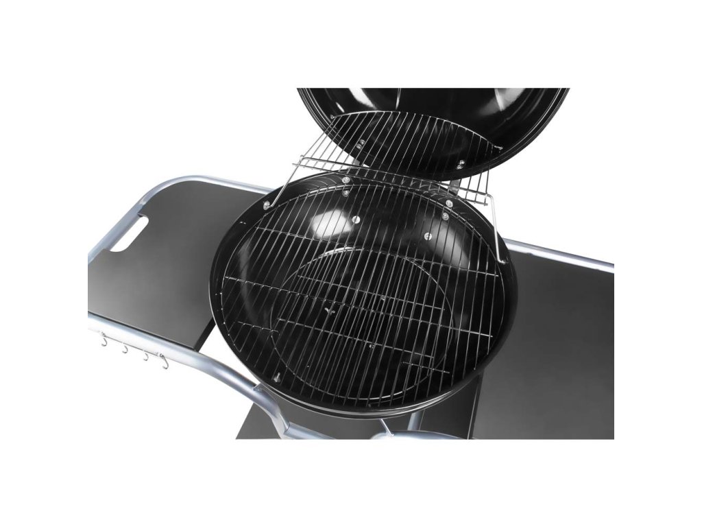 Povrchový náter celej konštrukcie vám výrazne uľahčí údržbu. Súčasťou balenia je rošt pre nepriame grilovanie, 2 priestranné odkladacie pulty s lištou na zavesenie náradia a ďalšia odkladacia plocha v spodnej časti grilu.