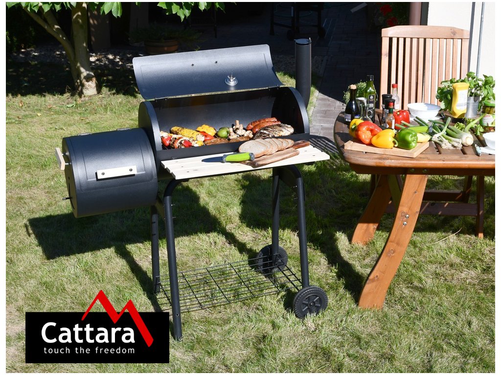 Viacúčelový záhradný gril CATTARA SMOKIE na drevené uhlie ocení každý milovník grilovania. Gril vás na prvý pohľad zaujme svojou konštrukciou typu lokomotíva. Vďaka sekundárnemu grilovaciemu priestoru ponúka možnosť nepriameho grilovanie alebo údenia.
