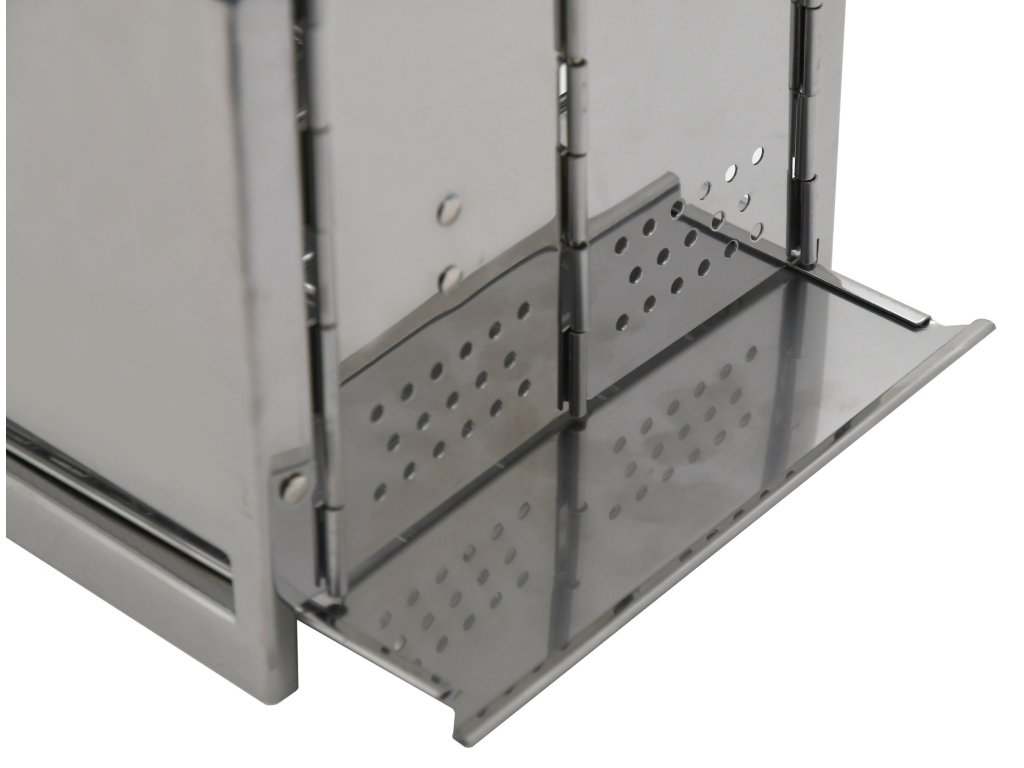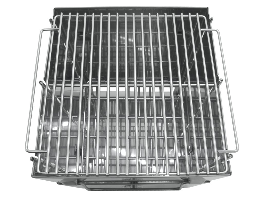 Na tepelnú prípravu pochutín je gril vybavený oceľovým roštom 20 x 20 cm. Ventilácia v spodnej časti konštrukcie zaistí plynulý prísun vzduchu. V spodnej časti je tiež umiestnený vysúvací popolník na ľahké vysypanie zvyškov uhlia.