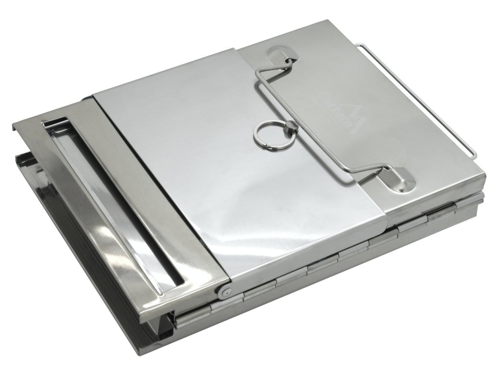 Konštrukcia je vyrobená z kvalitnej nerezovej ocele s lesklým povrchom. Stabilita je zaistená zložením konštrukcie. Rozmery grilu 22 x 21 x 27 cm.