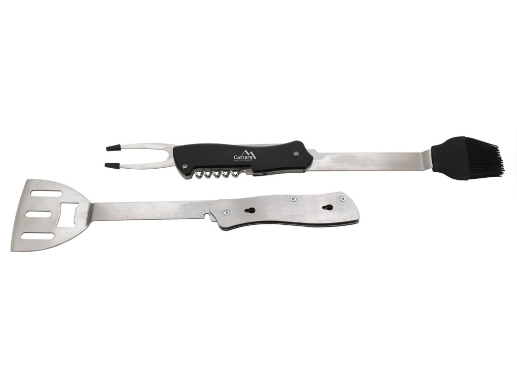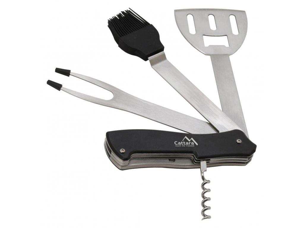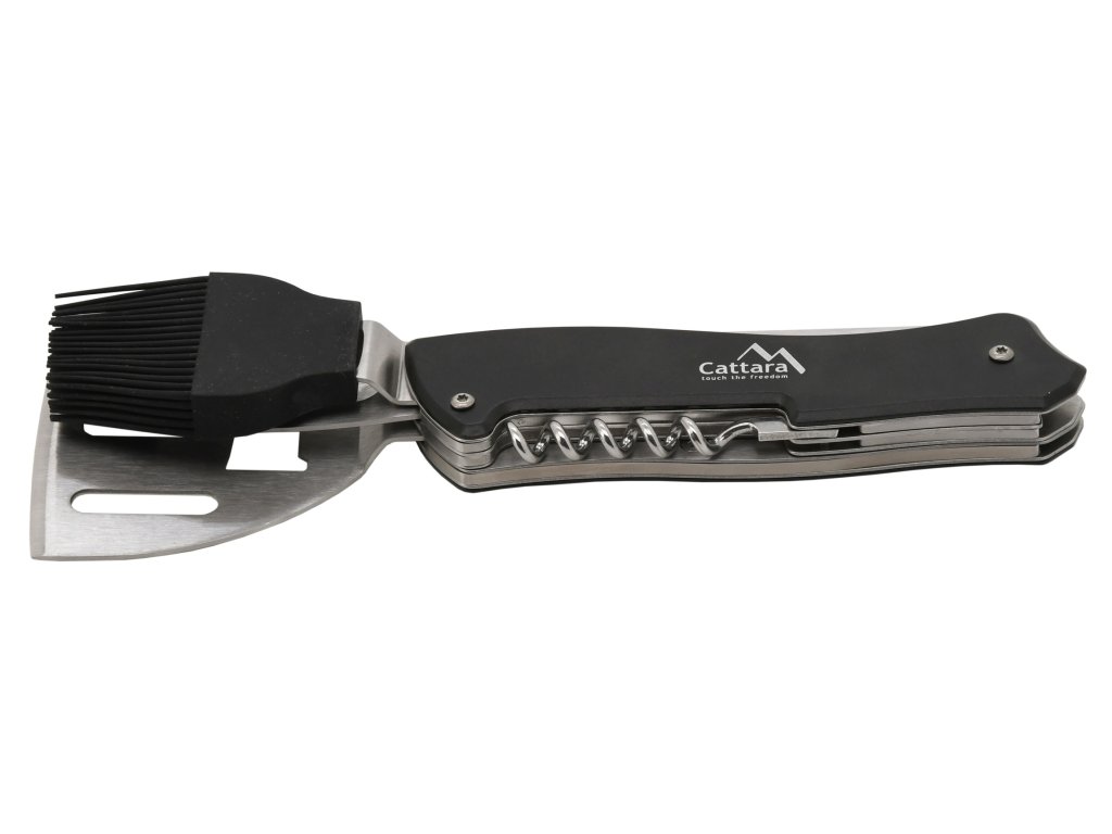 Nástroj je opatrený obracačkou, otváračom na korkové zátky, otváračom na zátky fliaš, vidlicou a mašľovačkou. Uplatnenie tak nájde v táborisku, v kempe, inde v prírode ale aj doma pri grilovaní.