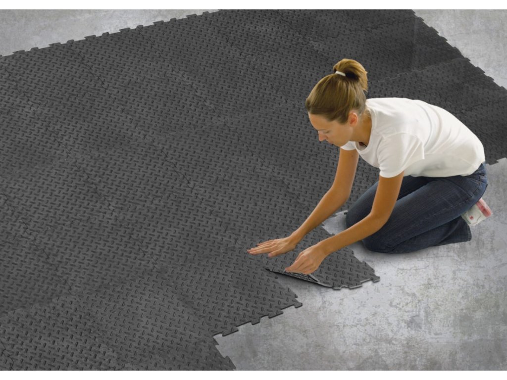 Najprv pripravte základ. Pri pokladaní dlažby je potrebné venovať pozornosť tomu, aby boli všetky diely rovnomerne rozložené. Vyplnenie okolia dlaždíc a lemovanie je dôležité na ochranu okrajov pred štiepením. Gumené dlaždice expandujú pri vystavení teplu, preto by ich inštalácia mala byť vykonaná pri optimálnej teplote 10-20° alebo v tieni. Ak začne počas procesu inštalácie lepidlo medzi dlaždicami peniť, nechajte ho vyschnúť. Potom ho možno ľahko odstrániť pomocou noža alebo skrutkovača. Na úpravu veľkosti gumených dlaždíc použite tapetový nôž. Na rezanie hrubších dlaždíc môžete použiť vykružovač.