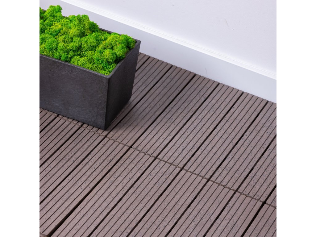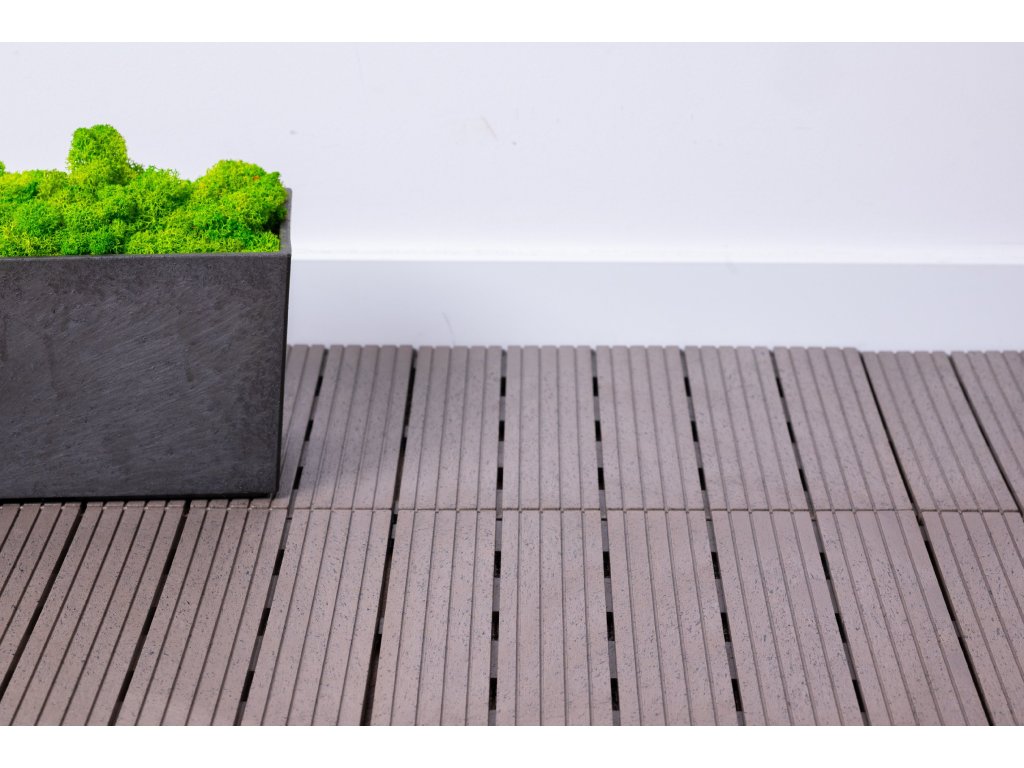 Zháňate novú dlažbu na balkón, terasu alebo záhradu? Dlaždice Cosmopolitan sú vyrobené zo zmesi gumového recyklátu a polypropylénu (oboje recyklovateľné). Tento materiál zaručuje vysokú odolnosť a dlhú životnosť. Dlažba sa dá využiť na terase, altánku, balkóne atď. Rovné dosadacie plochy zospodu dlaždice neponičia hydroizoláciu na pokladanom mieste. Medzi izoláciu a dlažbu nemusíte vkladať ďalšiu tkaninu, pretože tkanina môže spôsobovať plesne.