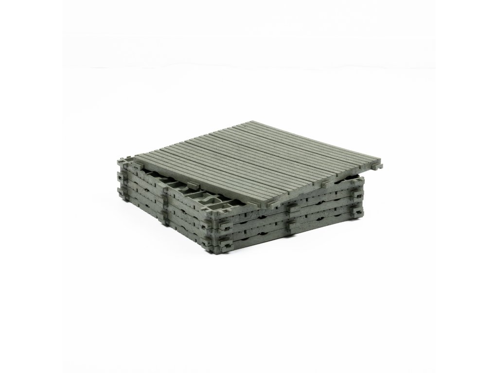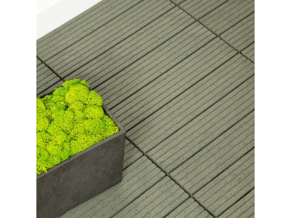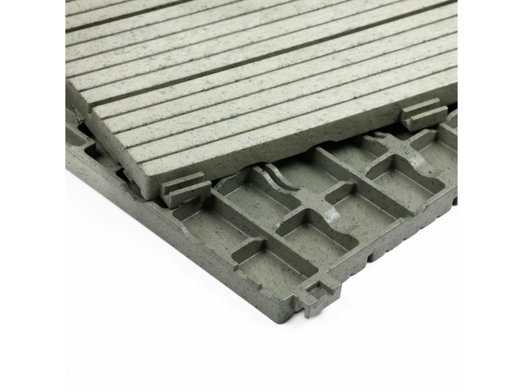 Zháňate novú dlažbu na balkón, terasu alebo záhradu? Dlaždice Cosmopolitan sú vyrobené zo zmesi gumového recyklátu a polypropylénu (oboje recyklovateľné). Tento materiál zaručuje vysokú odolnosť a dlhú životnosť. Dlažba sa dá využiť na terase, altánku, balkóne atď. Rovné dosadacie plochy zospodu dlaždice neponičia hydroizoláciu na pokladanom mieste. Medzi izoláciu a dlažbu nemusíte vkladať ďalšiu tkaninu, pretože tkanina môže spôsobovať plesne.