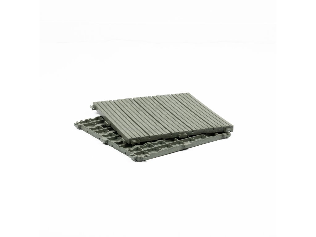 Podlahu môžete mať položenú behom pár hodín alebo za jedno popoludnie - záleží na veľkosti priestoru, kam dlažbu budete pokladať. Dlaždice majú praktické drážky, ktoré slúžia na odtok prebytočnej vody. Vďaka tomu sa voda nezhromažďuje medzi dlažbou a podkladom a nevznikne pleseň. Rovné dosadacie plochy zospodu dlaždice neponičia hydroizoláciu na vašej terase. Medzi izoláciu a dlažbu nemusíte vkladať ďalšiu tkaninu. Dlažba sa upevňuje pomocou bočných spojovacích háčikov, tzv. systémom Quick - Click. Prehľadný návod si môžete pozrieť na tomto odkaze.