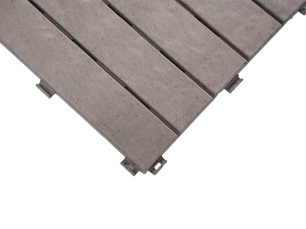 Podlahu môžete mať položenú behom pár hodín alebo za jedno popoludnie - záleží na veľkosti priestoru, kam dlažbu budete pokladať. Dlaždice majú praktické drážky, ktoré slúžia na odtok prebytočnej vody. Vďaka tomu sa voda nezhromažďuje medzi dlažbou a podkladom a nevznikne pleseň. Rovné dosadacie plochy zospodu dlaždice neponičia hydroizoláciu na vašej terase. Medzi izoláciu a dlažbu nemusíte vkladať ďalšiu tkaninu. Dlažba sa upevňuje pomocou bočných spojovacích háčikov, tzv. systémom Quick - Click. Prehľadný návod si môžete pozrieť na tomto odkaze.