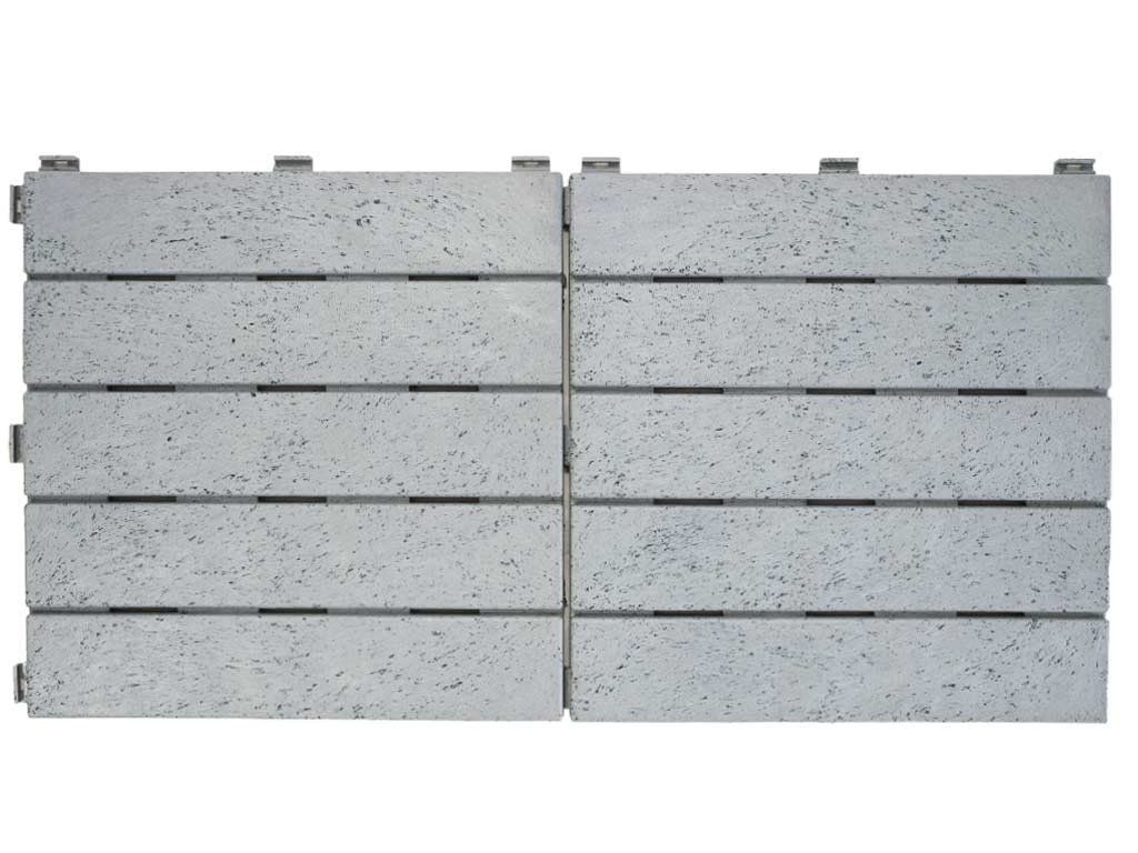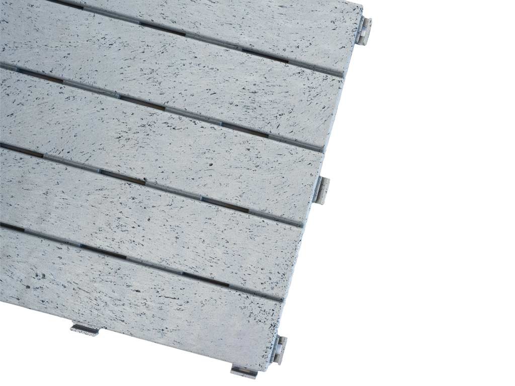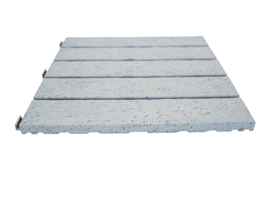 Podlahu môžete mať položenú behom pár hodín alebo za jedno popoludnie - záleží na veľkosti priestoru, kam dlažbu budete pokladať. Dlaždice majú praktické drážky, ktoré slúžia na odtok prebytočnej vody. Vďaka tomu sa voda nezhromažďuje medzi dlažbou a podkladom a nevznikne pleseň. Rovné dosadacie plochy zospodu dlaždice neponičia hydroizoláciu na vašej terase. Medzi izoláciu a dlažbu nemusíte vkladať ďalšiu tkaninu. Dlažba sa upevňuje pomocou bočných spojovacích háčikov, tzv. systémom Quick - Click. Prehľadný návod si môžete pozrieť na tomto odkaze.