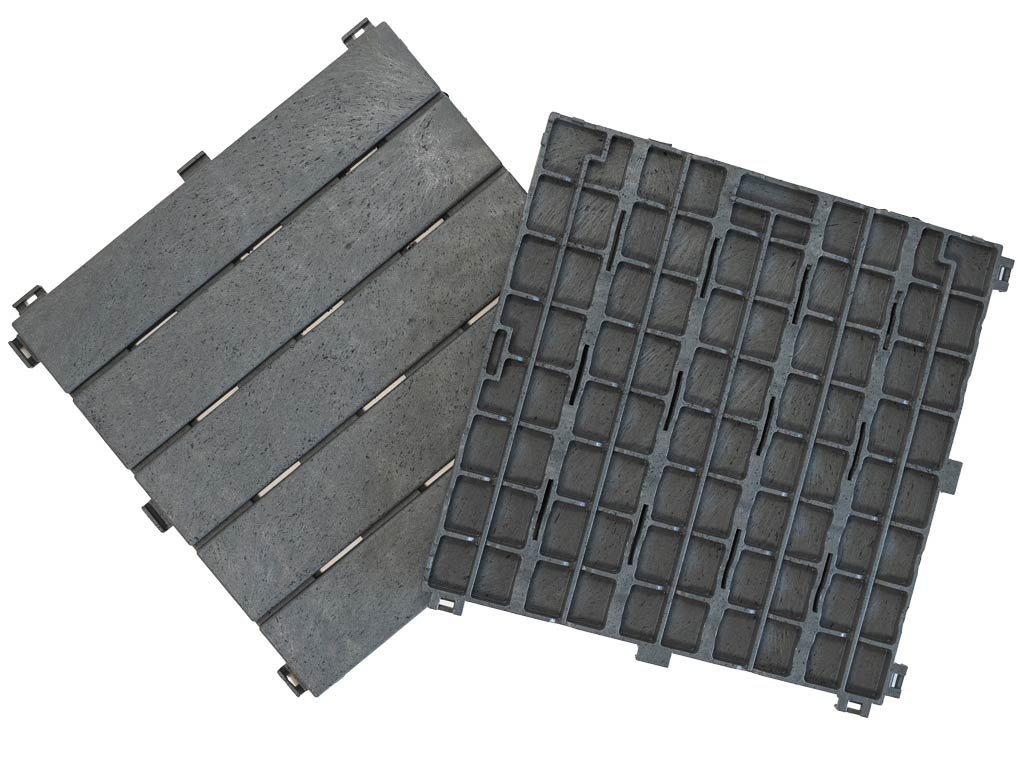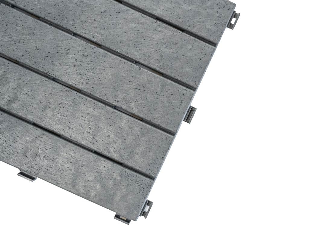 Podlahu môžete mať položenú behom pár hodín alebo za jedno popoludnie - záleží na veľkosti priestoru, kam dlažbu budete pokladať. Dlaždice majú praktické drážky, ktoré slúžia na odtok prebytočnej vody. Vďaka tomu sa voda nezhromažďuje medzi dlažbou a podkladom a nevznikne pleseň. Rovné dosadacie plochy zospodu dlaždice neponičia hydroizoláciu na vašej terase. Medzi izoláciu a dlažbu nemusíte vkladať ďalšiu tkaninu. Dlažba sa upevňuje pomocou bočných spojovacích háčikov, tzv. systémom Quick - Click. Prehľadný návod si môžete pozrieť na tomto odkaze.