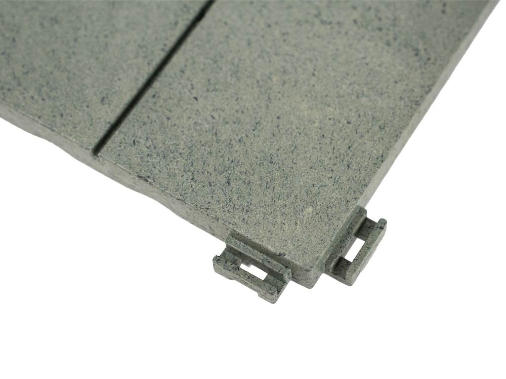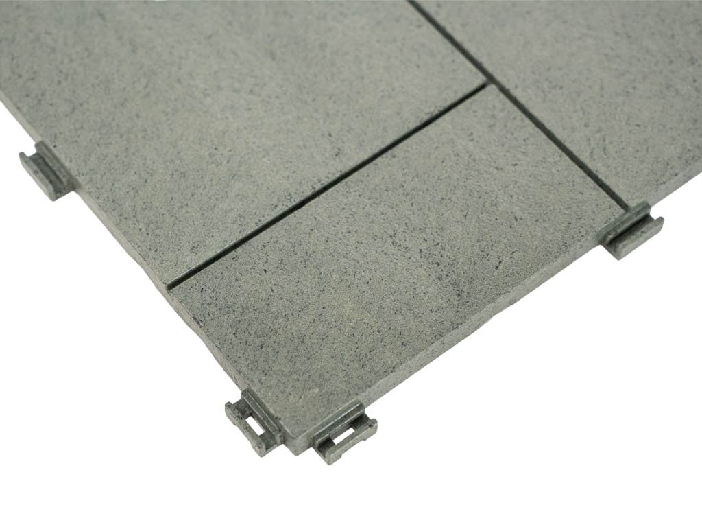 Podlahu môžete mať položenú behom pár hodín alebo za jedno popoludnie - záleží na veľkosti priestoru, kam dlažbu budete pokladať. Dlaždice majú praktické drážky, ktoré slúžia na odtok prebytočnej vody. Vďaka tomu sa voda nezhromažďuje medzi dlažbou a podkladom a nevznikne pleseň. Rovné dosadacie plochy zospodu dlaždice neponičia hydroizoláciu na vašej terase. Medzi izoláciu a dlažbu nemusíte vkladať ďalšiu tkaninu. Dlažba sa upevňuje pomocou bočných spojovacích háčikov, tzv. systémom Quick - Click. Prehľadný návod si môžete pozrieť na tomto odkaze.