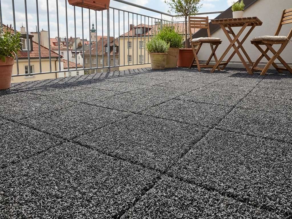 Earthgrass dlaždice spájajú krásny vzhľad s výhodami gumovej dlaždice. Sú ideálne pre priestory, kde je dôležitá odolnosť a jednoduchá údržba. Dostupné sú v troch zemných odtieňoch – antracit, svetlosivá a piesok, ktoré dodávajú balkónom alebo (strešným) terasám prirodzený vzhľad.