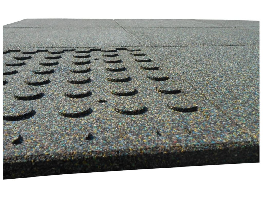 Gumová dlažba Fitness Tile je odolné a ekologické riešenie pre interiér aj exteriér. Dlaždice s rozmerom 40 × 40 × 3 cm sú vyrobené z recyklovanej pryže spojenej pružným PU lepidlom, čo z nich robí cenovo dostupný a šetrný materiál k životnému prostrediu. Povrch z farebných gumových granulátov dodáva dlažbe zaujímavý vzhľad – imitáciu liateho kameňa. Vďaka protišmykovým a pružným vlastnostiam tlmí nárazy, zmierňuje riziko zranení a chráni podlahu pred poškodením.