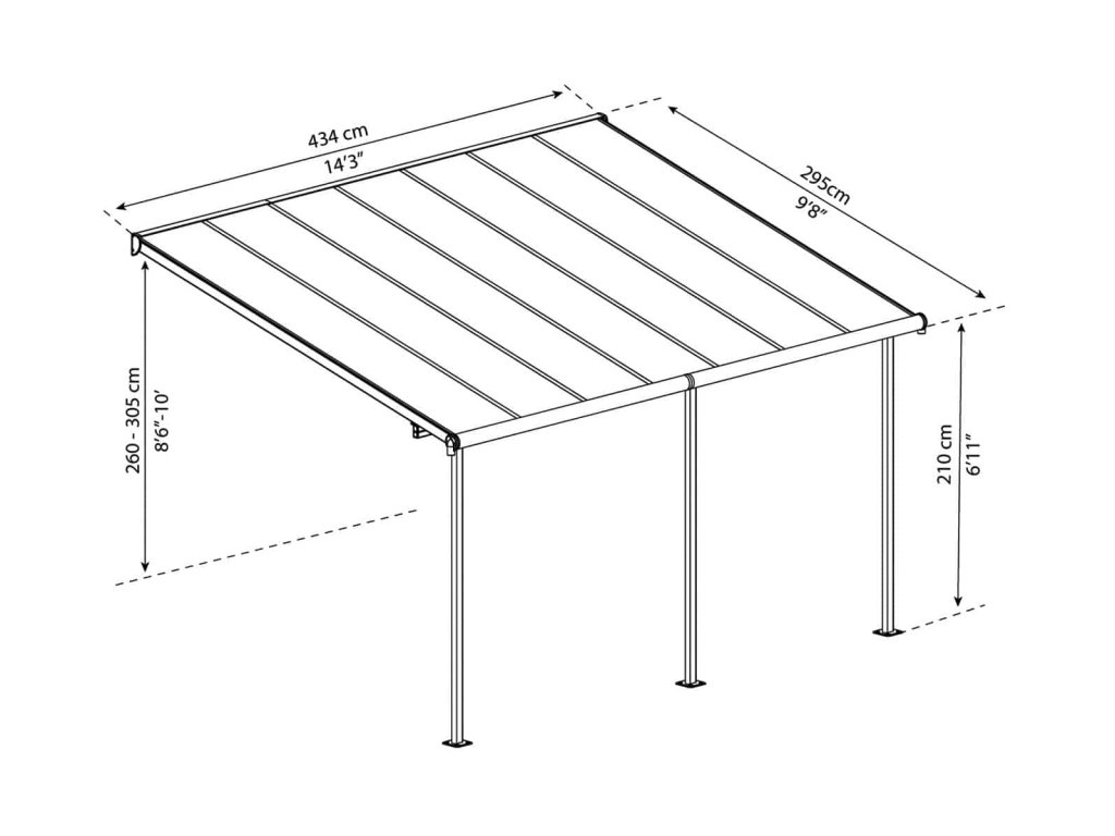 Capri 4200 antracit 3 x 4,25 m hliníková pergola od značky PALRAM Capri je elegantné a kvalitné riešenie na zakrytie vašej verandy alebo terasy. Moderná a praktická hliníková pergola, ktorá vydrží dlhé roky, je za dostupnú cenu, výborne vyzerá a postavíte ju vo dvojici za jedno popoludnie. Bude skvelým doplnkom vašej záhrady a poskytne vám úkryt pred slnkom a ochranu pred dažďom.