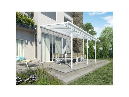 Veľmi pevná konštrukcia z hliníkových profilov a silného číreho polykarbonátu so 100 % UV ochranou. Strešné panely odolné voči vysokému zaťaženiu snehom aj krúpami majú priepustnosť svetla 80 %. Pergola tak vytvára príjemný tieň, ale zostáva bohato presvetlená. Unikátny systém nasunutia strešných panelov bez ďalšieho spojovacieho materiálu a nutnosti liezť na strechu.
