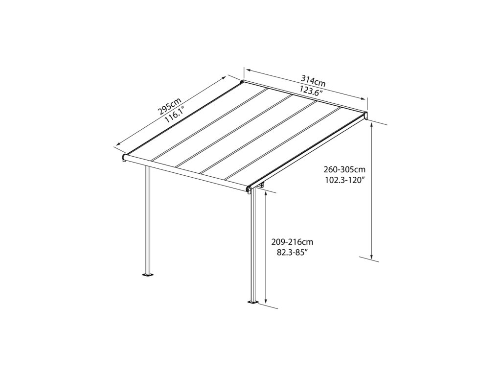 Sierra 3000 biela 3 x 3 hliníková pergola od značky PALRAM Sierra je elegantné a kvalitné riešenie na zakrytie vašej verandy alebo terasy. Moderná a praktická hliníková pergola, ktorá vydrží dlhé roky, je za dostupnú cenu, skvele vyzerá a zmontujete ju dvaja ľudia za jedno popoludnie. Bude skvelým doplnkom vašej záhrady a poskytne vám úkryt pred slnkom a ochranu pred dažďom.