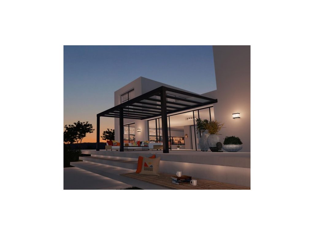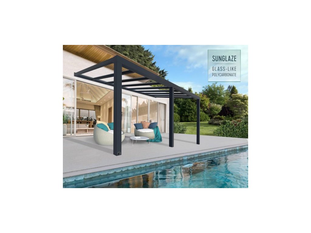 Vďaka precízne predrezaným panelom, zásuvnému systému panelov, predvŕtaným dieram a návodu, ktorý vedie používateľa krok za krokom, je rýchla montáž možná aj v dvojici. Pergola nepotrebuje základy, iba pevný podklad a pevnú kotviacu stenu. Kotviaci systém je súčasťou dodávky. Strešné panely sú vyrobené zo 4 mm hrubého, krištáľovo číreho polykarbonátu s výzorom skla. Majú 100 % UV ochranu, takže nezostarnú ani nezmenia farbu. Navyše sú prakticky nerozbitné a poskytujú dokonalú ochranu pred všetkými rozmarmi počasia. Ľahko sa čistia a sú bezúdržbové. Systém zasúvacích panelov je bez skrutkových spojov, takže nehrdzavie a je odolný voči presakovaniu vody.