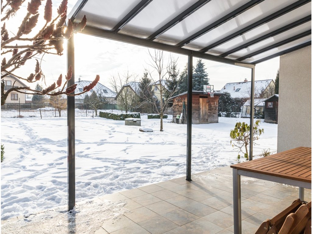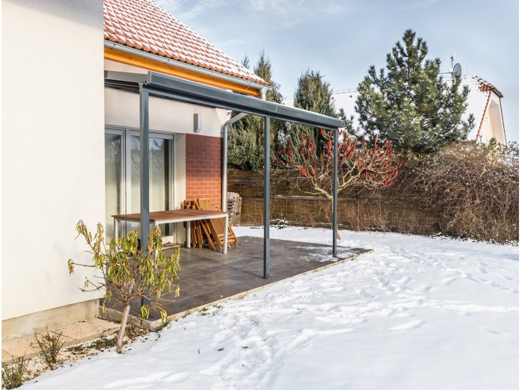 Hliníkové pergoly Terrassendach sa vyrábajú v troch rôznych šírkach a dvoch rôznych hĺbkach (od steny domu), prípadne môžete pergoly rozšíriť o ďalších 1,2 metra. Vyberať môžete aj z dvoch farebných variantov oceľových profilov - bielej a antracitovej.