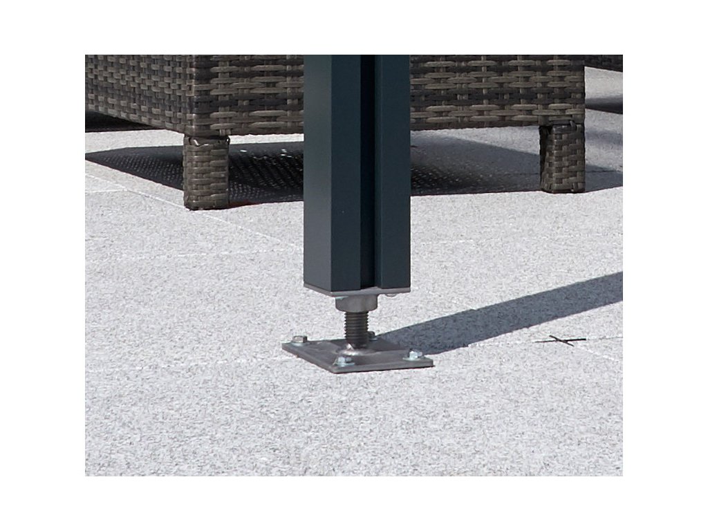 Robustná konštrukcia pergoly je vyrobená z vysoko odolných, eloxovaných, hliníkových dutých profilov 8 x 8 cm, opatrených antikoróznym nástrekom práškovým lakovaním v antracitovej farbe. Vďaka tomu je pergola vysoko odolná voči hrdzaveniu, plesniam a machom a je v podstate bezúdržbová. Stĺpiky sú vybavené výškovo nastaviteľným systémom na jednoduché vyrovnanie výškových nerovností. Pergola je vybavená integrovaným odkvapom s výstupom vody na oboch stranách.