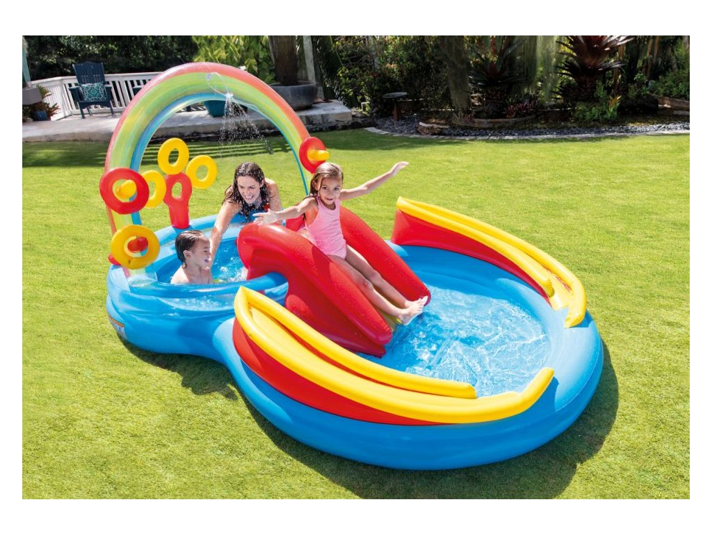 Oživte letné dni plné zábavy s nafukovacím hracím centrom Rainbow Ring. Tento set obsahuje šmykľavku, sprchu a ďalšie príslušenstvo, ktoré zaručia deťom nekonečné hodiny radosti a dobrodružstva. S dvoma bazénikmi s kapacitou 175 a 206 litrov si deti môžu vybrať ten, ktorý im najviac vyhovuje.