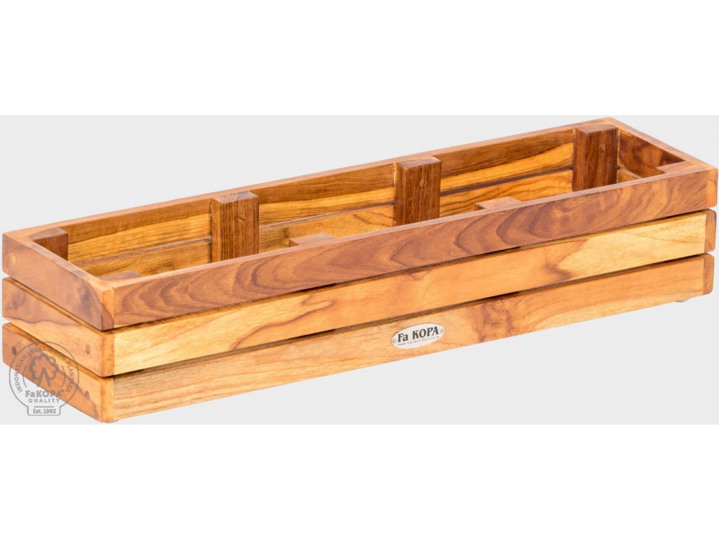 Teakový hrantík Fiori s rozmermi 66 x 17 cm a výškou 14 cm je vyrobený z kvalitného indonézskeho teaku. Starostlivá remeselná práca a čapované pevné spoje zaručujú pevnosť a stabilitu hrantíka. Je veľmi odolný voči vonkajších vplyvom ako je dážď či slnko. Hrantík je ošetrený teakovým olejom.