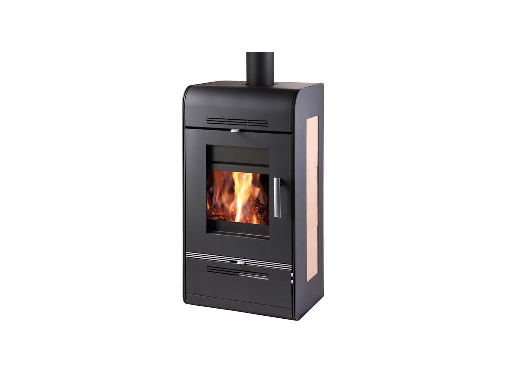 Kachle s výmenníkom ANDRUS čierna, béžový obklad