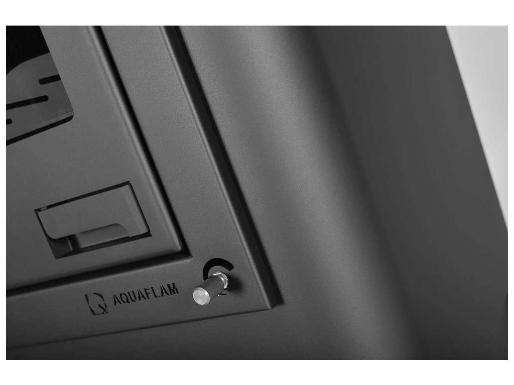 Krbové kachle Aquaflam s výmenníkom a výkonom 25 kW (21 kW do vody / 4 kW do vzduchu) v čiernej farbe. Vykurovacia schopnosť činí až 600 m3 s externým prívodom vzduchu, hrúbka plechu 4 a 6 mm, vrátane ochladzovacej slučky.