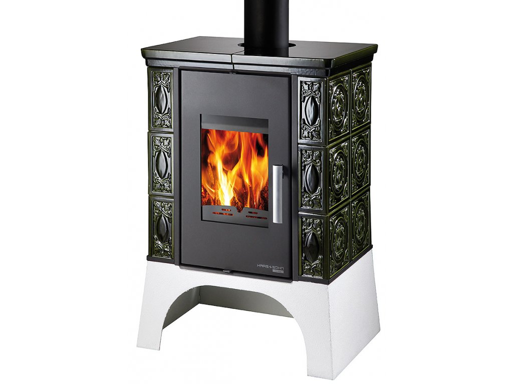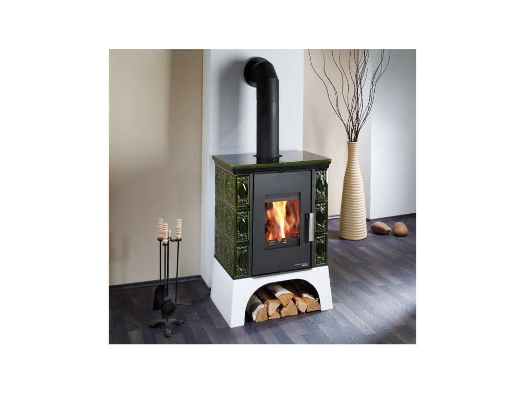 Krbové kachle s výmenníkom Haas+Sohn EMPOLI AL II v čiernom prevedení s kachľovým obkladom v zelenej farbe s bielym podstavcom nájdu svoje uplatnenie v novostavbách aj existujúcej zástavbe. Kachle spájajú nadčasový dizajn s tradičným kachľovým obložením v klasickom dekore, ktorý zapadne do každého interiéru.
