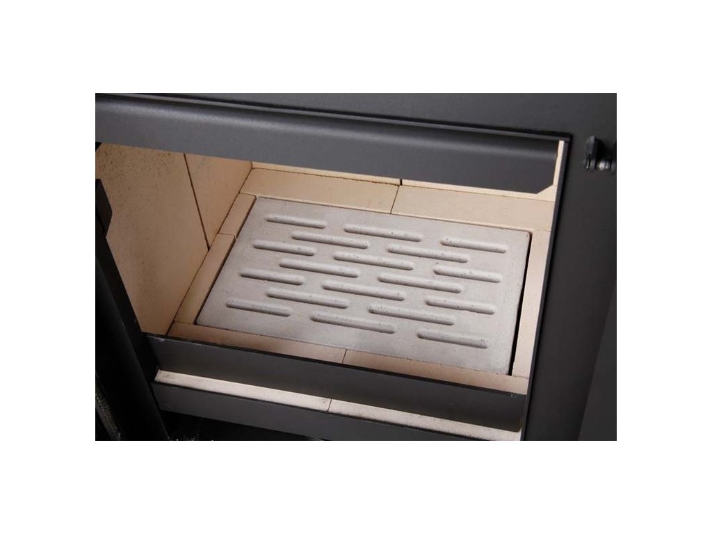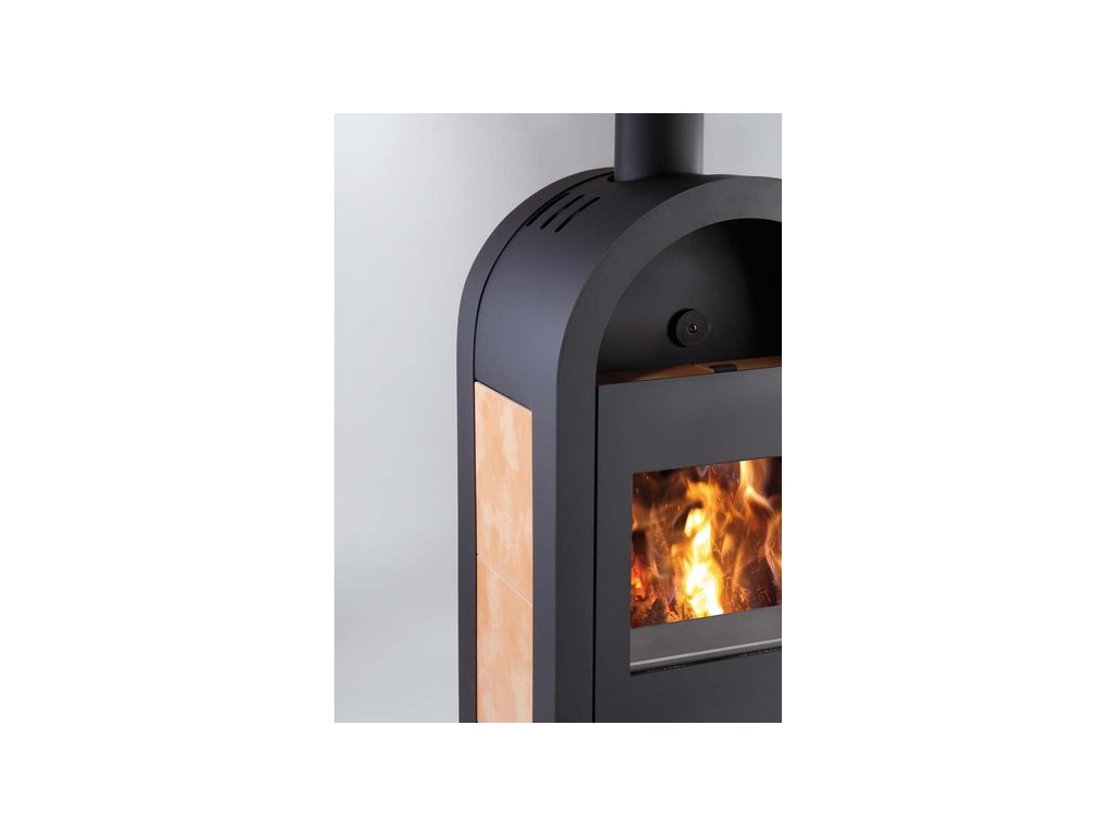 Uchvátia vás svojím luxusným prevedením a väčšími sklenenými dvierkami zo špeciálnej sklo-keramickej hmoty s vysokou tepelnou odolnosťou, ktoré zaručujú nádherný zážitok z pohľadu na plápolajúci oheň. Pod presklenou časťou kachlí nájdete priestor určený pre skladovanie dreva, či drevených brikiet.