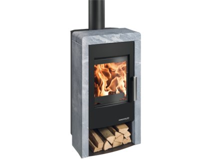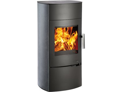 Krbové kachle Haas+Sohn LIVORNO s výkonom až 7 kW v antracitovej farbe s pieskovcovým obkladom.