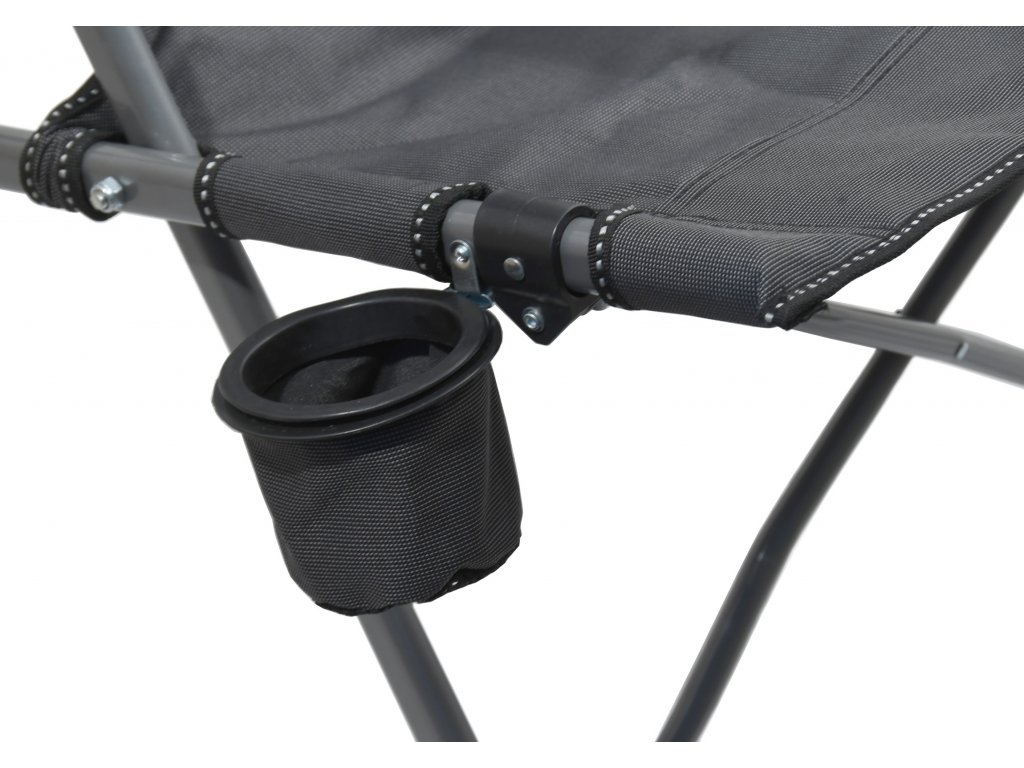 Kreslo ocení každý outdoor nadšenec vďaka ponúkanému pohodliu a pevnej konštrukcii. Kreslo je opatrené kvalitne zošitým poťahom a polstrovanými rukoväťami. V spodnej časti je konštrukcia opatrená vyklápacím držiakom na pitie.