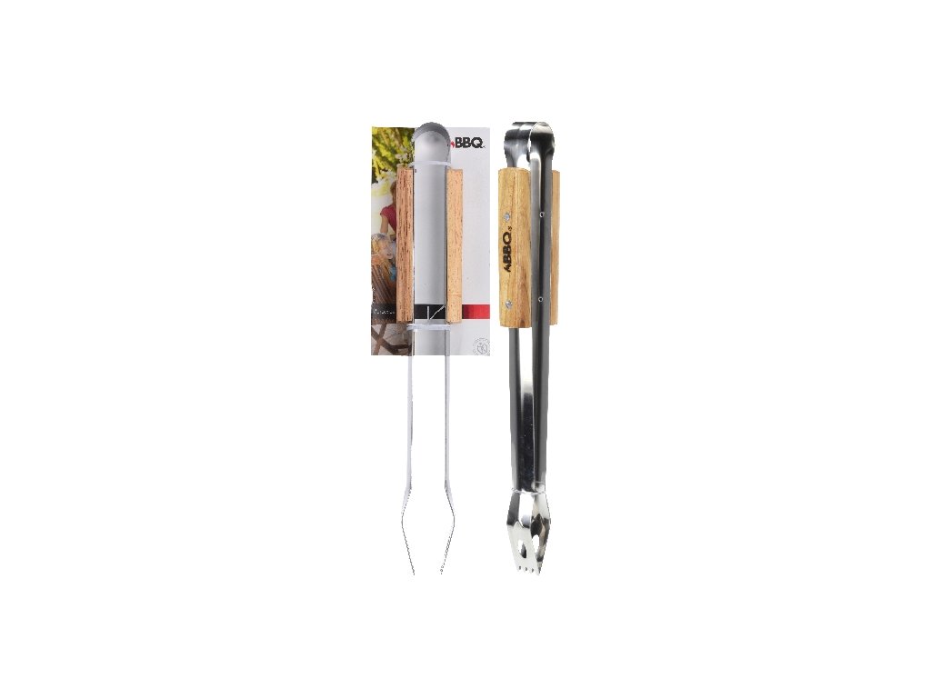 Kliešte grilovacie 40,5cm BBQ nerez, drev. rukoväť