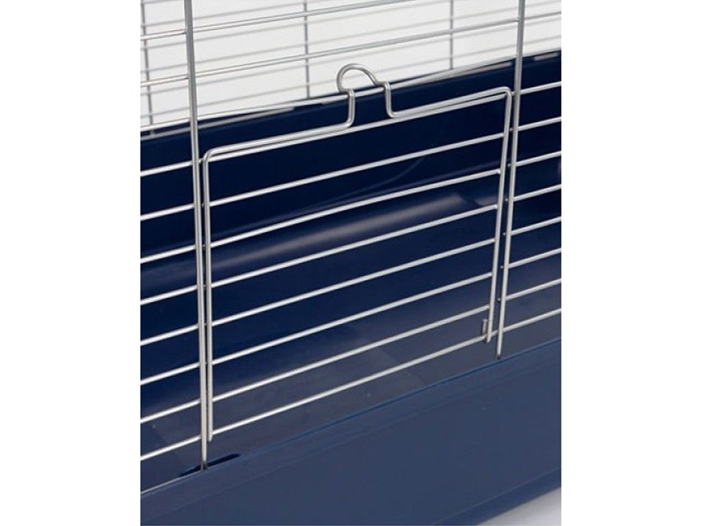 Klietka je vybavená prednými dvierkami na každom poschodí a hornými dvierkami na vrchnej časti. Súčasťou balenia sú aj dve senové krmítka, ktoré možno jednoducho zavesiť z vonkajšej strany klietky. Celá konštrukcia je postavená na praktickom zasúvacom systéme, vďaka ktorému je manipulácia s klietkou jednoduchá a rýchla.
