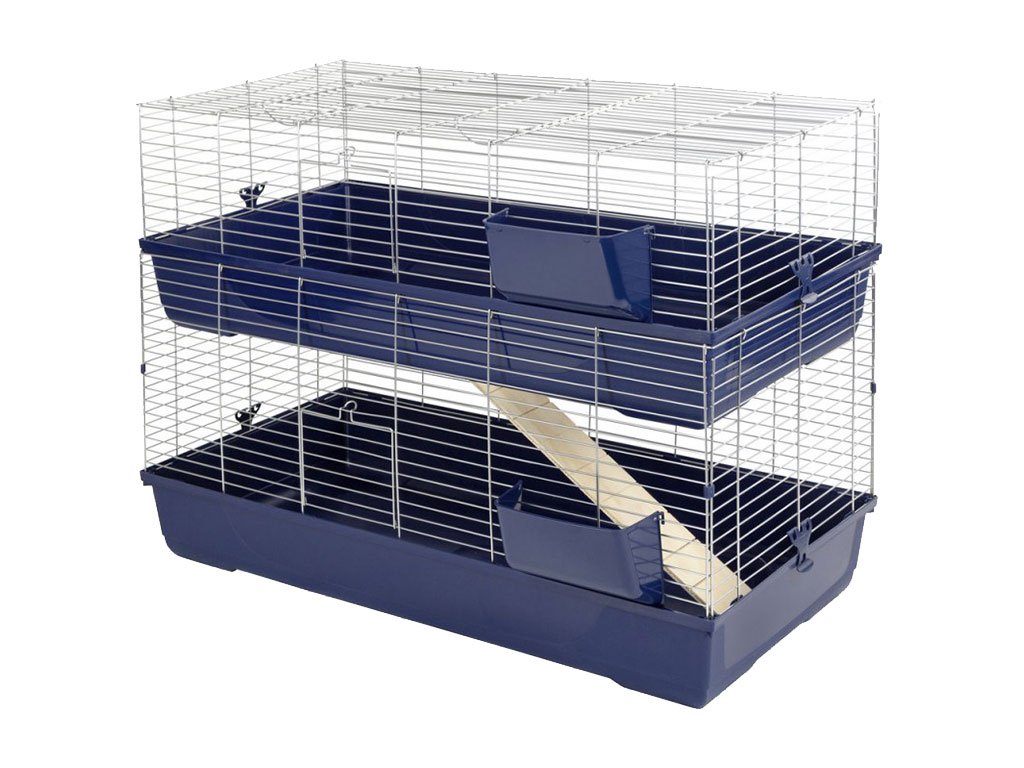 Táto dvojposchodová klietka je ideálna pre králiky, morčatá, činčily a iné malé hlodavce. Jednotlivé poschodia sú prepojené dreveným rebríkom s drážkami, ktoré uľahčujú bezpečný pohyb medzi podlažiami.