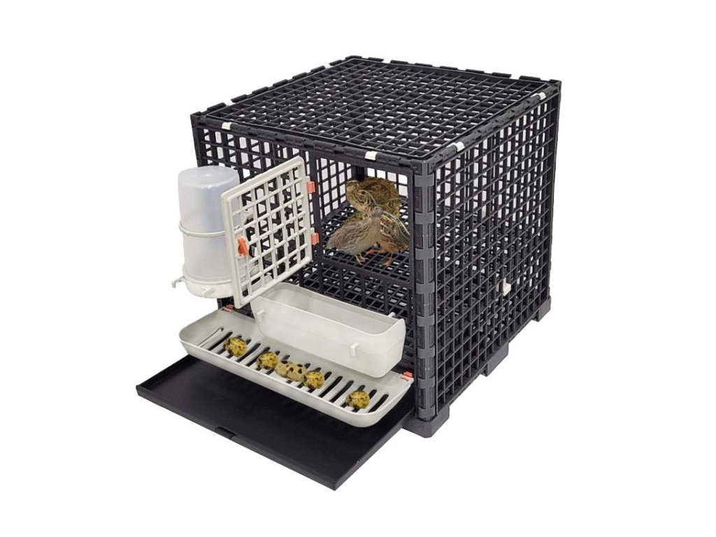 Klietka je vyrobená špeciálnou technológiou lisovania plastu. Klietka má 1 oddiel. Súčasťou balenia je vysúvateľná miska na trus, napájačka 1 l, kŕmidlo, mriežka proti plytvaniu krmivom a znáškové hniezdo, do ktorého sa vajíčka samé skotúľajú. Vďaka tomuto hniezdu sú vajíčka vždy čisté a nepoškodené. Oproti iným materiálom má plastový materiál výhodu jednoduchej údržby a odolnosti voči vírusom a baktériám!