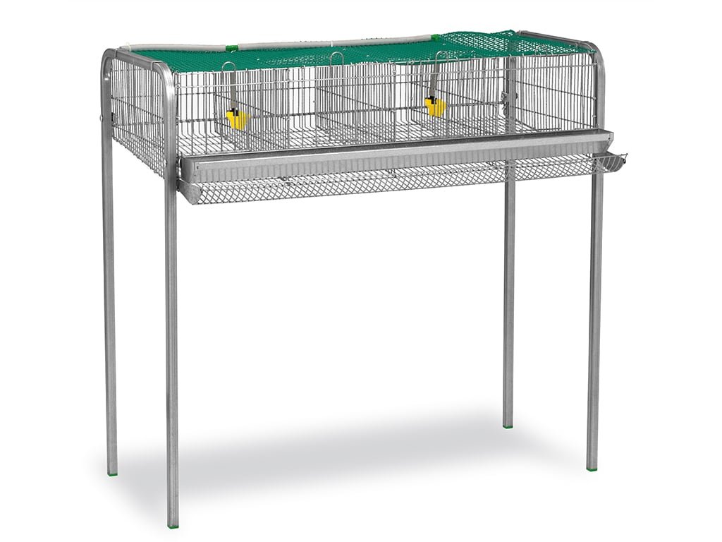 Klietka je vybavená závesným kŕmidlom vyrobeným z pozinkovanej ocele. Nechýbajú ani napájačky, ktoré sú vždy spoločné pre dva oddiely.