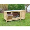 Drevená králikáreň KERBL HUTCH XXL VARIO pre chov králikov alebo iných malých hlodavcov o rozmeroch 155 x 76 x 80 cm. Ide o luxusnú králikáreň, ktorá je vybavená vyberateľným trusníkom pre ľahké čistenie, stojanom na seno a priestorom pre uschovanie kŕmenia a doplnkov. Bezproblémový prístup do králikárne zaisťujú dvoje predné a jedny bočné dvierka a tiež výklopná strecha.