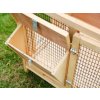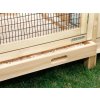 Čistenie králikárne zvládnete behom pár minút. Prácu veľmi uľahčí výsuvný plastový trusník, ktorý stačí z králikárne vysunúť, vyčistiť a vrátiť späť. Pri údržbe králikárne určite oceníte aj odklápaciu strechu.