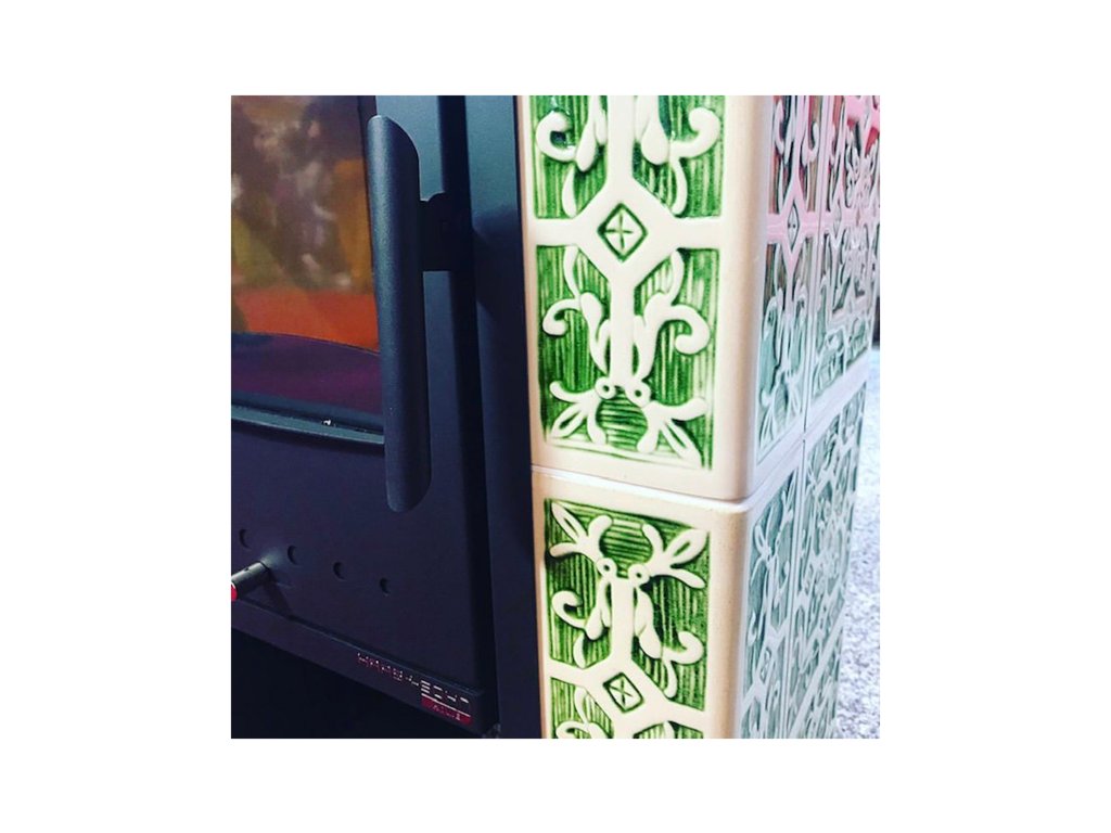 Krása tradície dáva krbovým kachliam ČIČMANY z radu HOME svoju jedinečnosť. Vzor na kachličkách je inšpirovaný vzorom z obce Čičmany, ktorá je známa svojou typickou svetoznámou architektúrou a maľbami. Kombinácia slonovej kosti a olivovo zelenej farby vám pripomenie staré kachle a pece u babičky. Prečo si ich teda nezaobstarať a nemať krásnu rustikálnu atmosféru každý deň? Kachle Čičmany vám nezaberú veľa miesta, sú vysoké len necelý meter a hĺbkou zaberú do priestoru iba 35 cm.