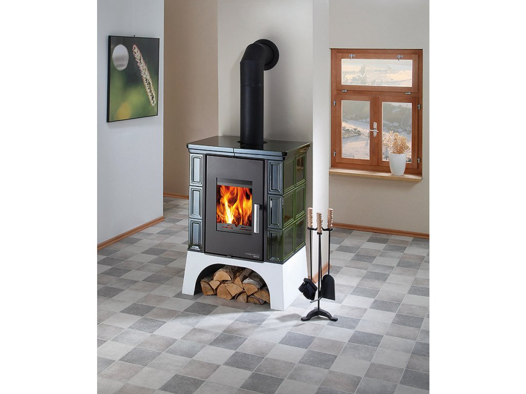 Krbové kachle Haas+Sohn EBOLI v čiernom prevedení s kachľovým obkladom v zelenej farbe nájdu svoje uplatnenie v novostavbách aj existujúcej zástavbe. Kachle spájajú nadčasový dizajn s tradičným kachľovým obložením v klasickom dekore, ktorý zapadne do každého interiéru.