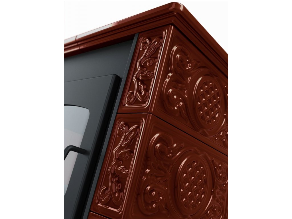 - Kachľové pece Bali sú navyše obložené pravými, ručne vyrábanými kachličkami. Dizajn kachlíc bol špeciálne vykreslený našimi dizajnérmi a nesie názov "spovednica". Obklad je akumulačným materiálom a z toho dôvodu sa akumulačná schopnosť kachlí značne navyšuje.