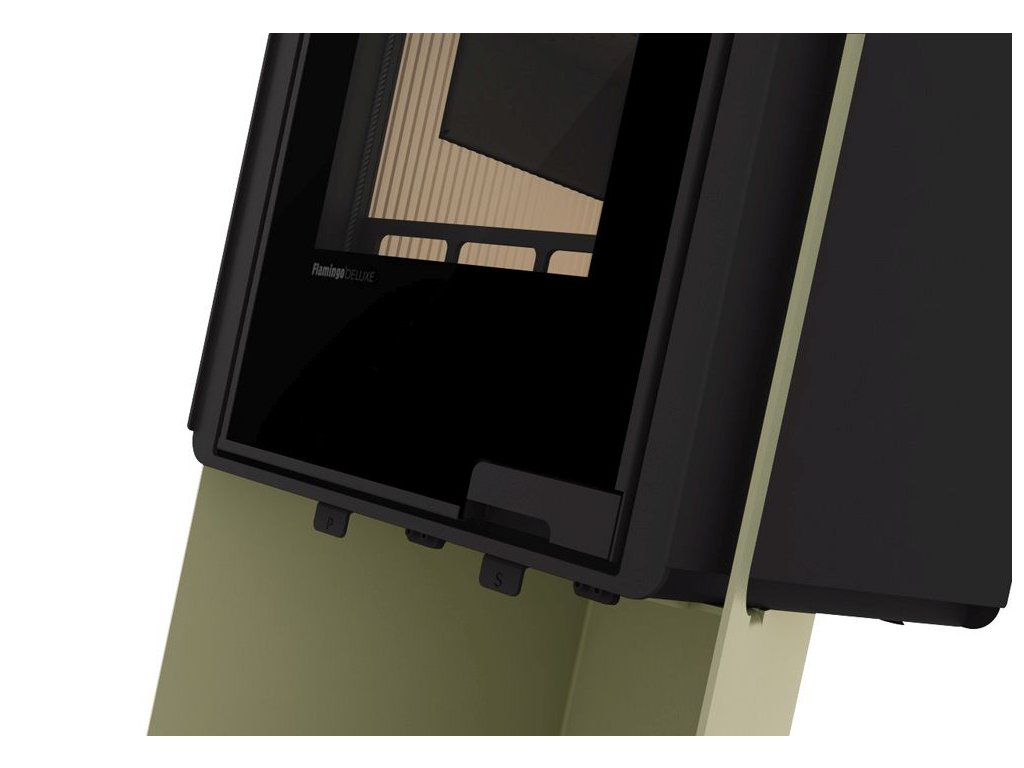 Systém spaľovania u kachlí Flamingo DELUXE je dokonalosť sama. Prísun vzduchu je zaistený centrálne zo zadnej časti kachlí. Množstvo popola je minimálne. Celý spaľovací proces je ovládaný dvoma tiahlami, keď prvý slúži na reguláciu primárneho vzduchu, potrebného k zakúreniu a rozhoreniu dreva. Druhé tiahlo slúži na podporu sekundárneho spaľovania, teda spaľovanie plynov. Jeho otvorením dochádza k prísunu terciárneho predhriateho vzduchu do hornej časti, ktorý je vháňaný do komory pomocou vrchného deflektora. Tento vzduch sa používa k úspornému a čo najefektívnejšiemu priebehu horenia dreva. Týmto je zaistená vysoká účinnosť a krásne horenie vrátane čistého skla. Na zabezpečenie správneho spaľovania je potrebný správny ťah komína, ktorý docielite umiestnením regulátora.