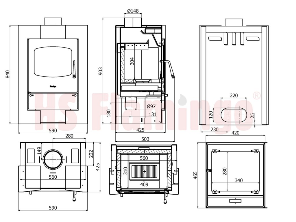 | Rozmery ohniska (Š x H x V): | 405 x 310 x 280 mm |