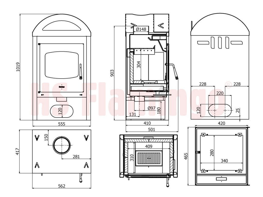 | Rozmery ohniska (Š x H x V): | 405 x 310 x 280 mm |