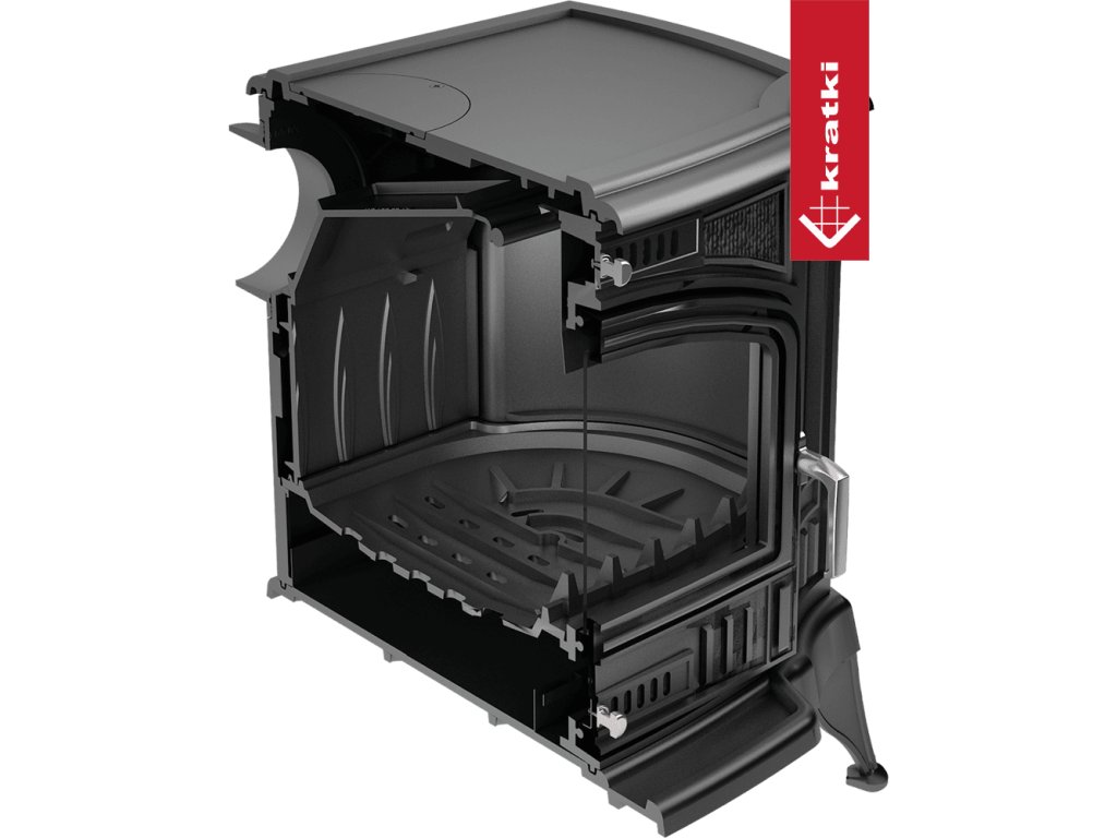 Liatinové krbové kachle od výrobcu KRATKI sa vyznačujú vysokou kvalitou, elegantným dizajnom a jednoduchosťou používania. Veľké presklenie poskytuje úžasný pohľad na horiaci oheň. Telo kachlí je vďaka použitiu kvalitnej 8 mm liatiny odolné voči vysokým teplotám. Spaľovanie palivových častíc je efektívne vďaka deflektoru, ktorý predlžuje dráhu spalín. Ručná regulácia spaľovacieho procesu cez popolník. Možnosť kúrenia uhlím pri dokúpení špeciálneho košíka na uhlie.