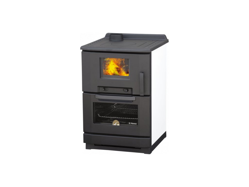Obsluha je veľmi jednoduchá a praktická, pričom sporák je dostupný v atraktívnej bielej farbe a za veľmi priaznivú cenu. Horný vývod dymu má priemer 120 mm, čo umožňuje jednoduchú montáž podľa potreby. Sporák PLAMEN spĺňa prísne normy Ekodesign, čo zaručuje ekologický a úsporný chod.