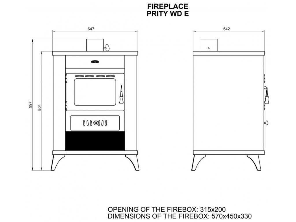 Výkonné krbové kachle PRITY s výkonom 15 kW. Tieto kachle skvele poslúžia aj na vykúrenie stredne veľkých priestorov a to s objemom až 210 m3Vývod dymovodu s priemerom 130 mm je umiestnený v hornej časti kachlí.