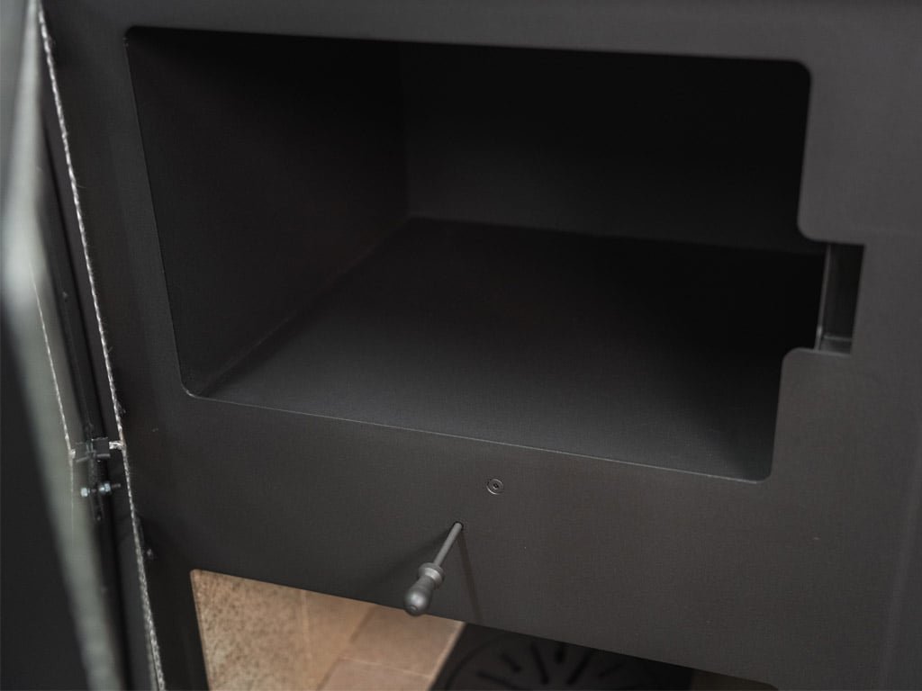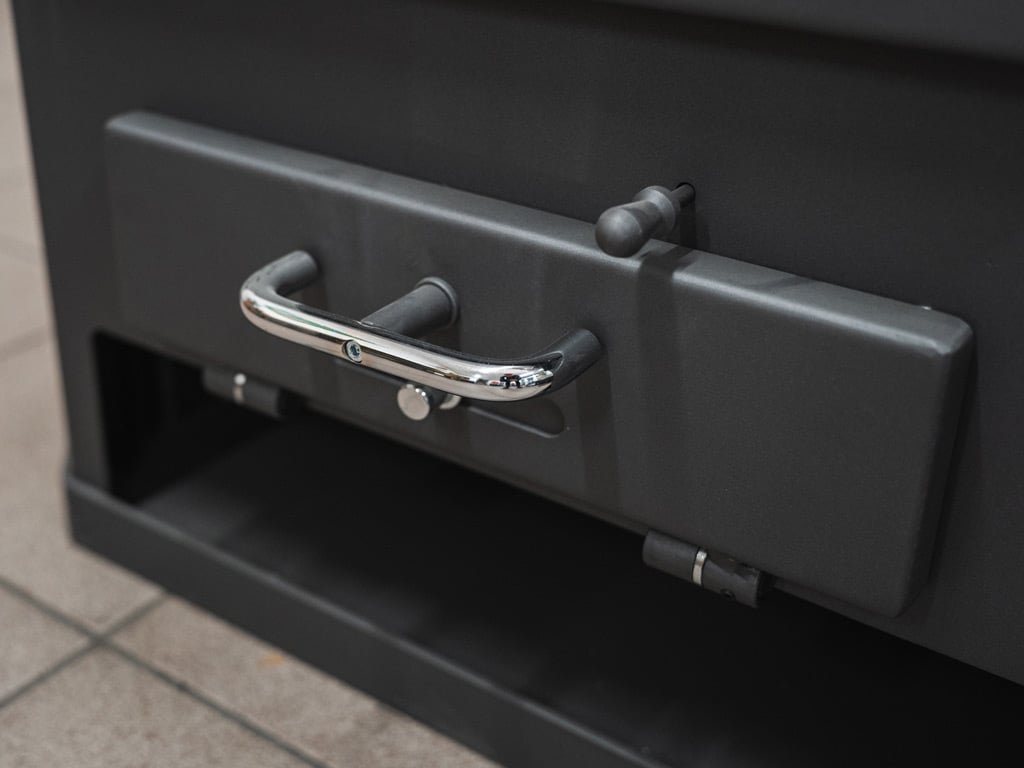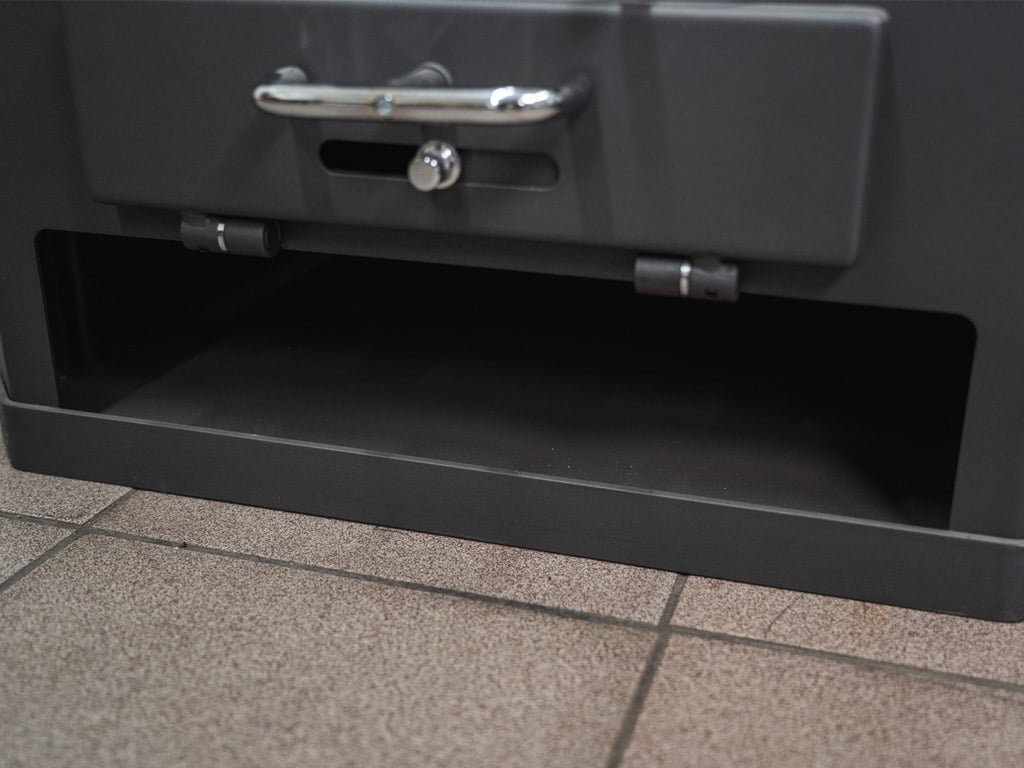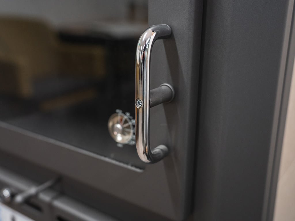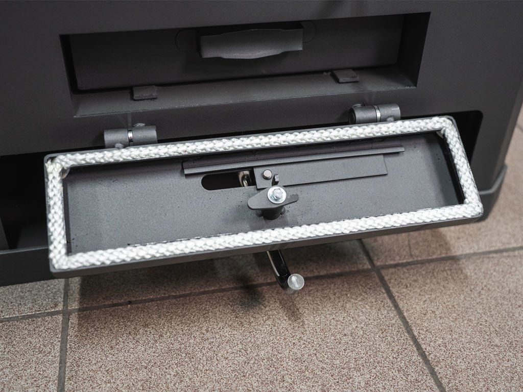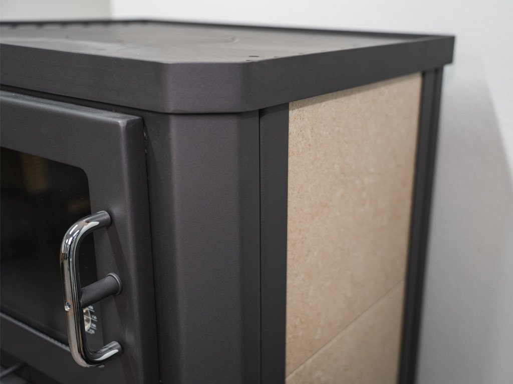 Kachle sú z kvalitného oceľového plechu o hrúbke 3-4 mm. Sú lakované špeciálnym lakom, ktorý odoláva vysokým teplotám. Kovové kľučky a regulátory sú poniklované. Tým sa znižuje opotrebovanie povrchu na minimum. Vďaka presklenému kúrenisku si užijete dokonalý zážitok z pohľadu na plápolajúci oheň. Dvierka ohniska sú opatrené tepelne odolným keramickým sklom, ktoré je odolné teplotám do 850°C. Tesnenie dvierok je zo sklených vlákien. V spodnej časti kachlí nájdete praktický priestor na skladovanie dreva.